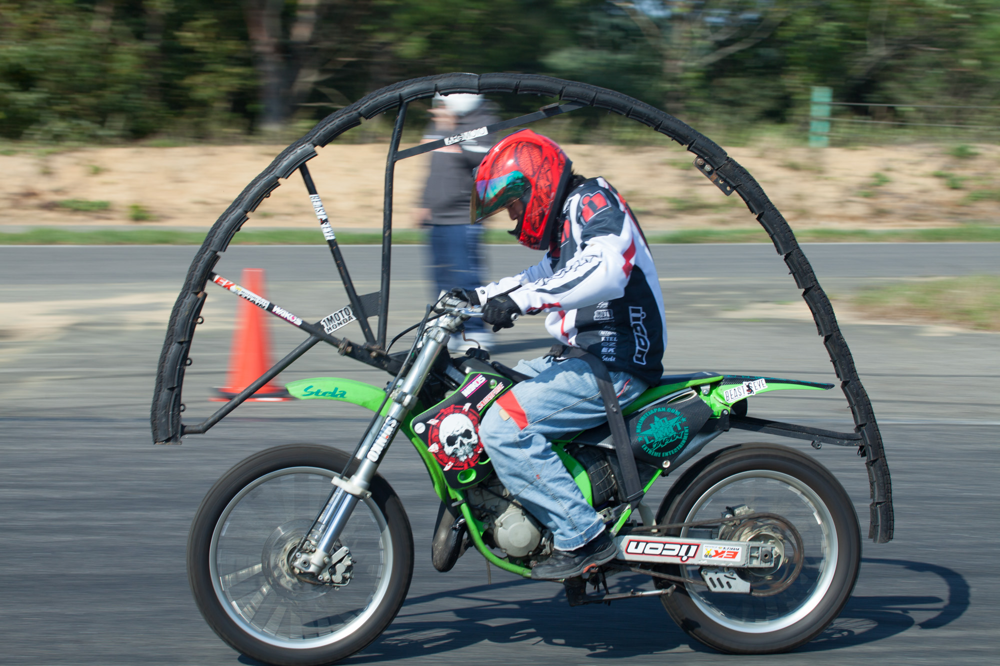 バイクはまだしも、あの軽トラは大笑いしました。記事中には書きませんでしたが、あの軽トラ、でんぐり返しを見事成功させたものの、着地の際、ドシーンという轟音とともにドライブシャフトが外れていました。見事なまでの一発芸です(笑)